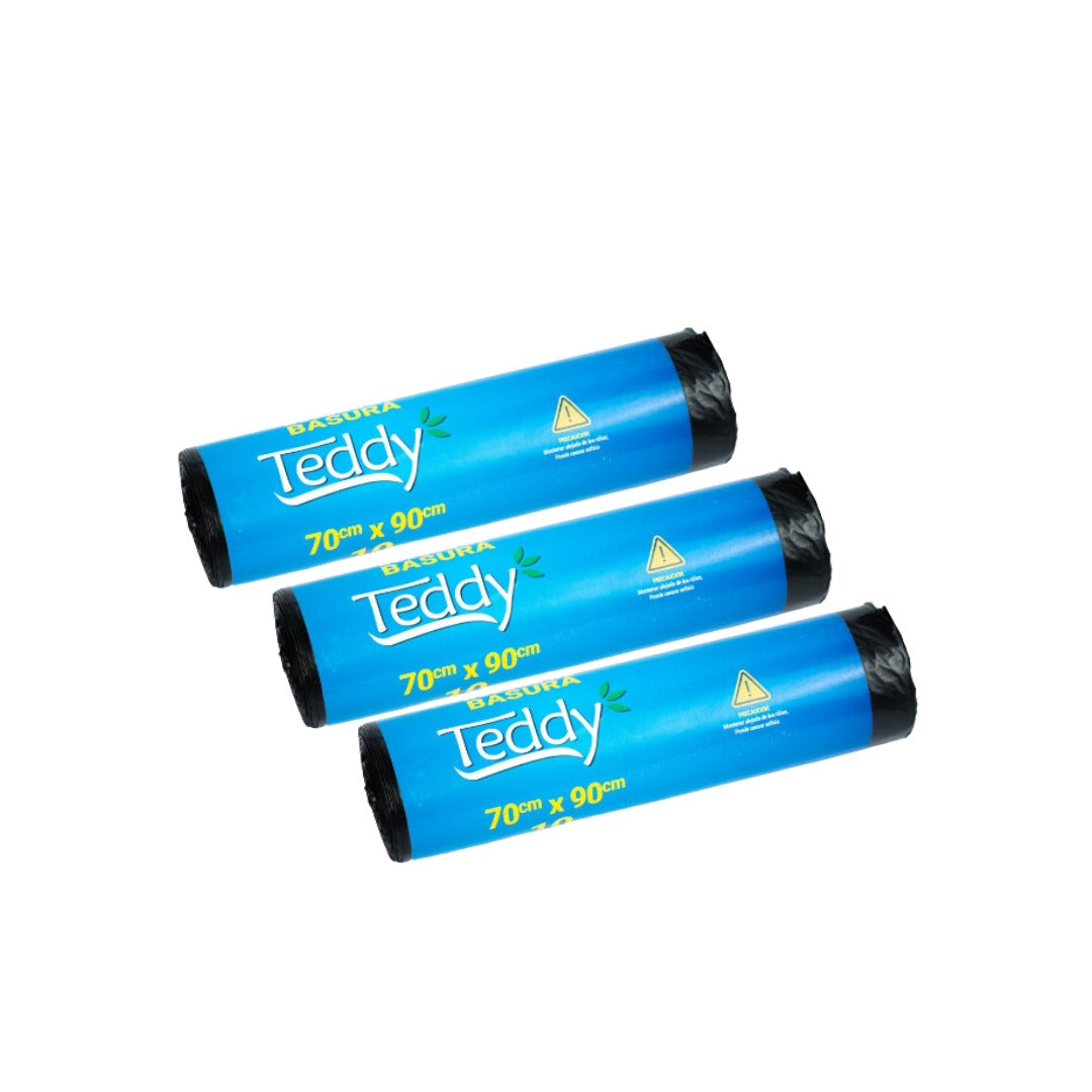 BOLSA DE BASURA, MARCA TEDDY, COLOR NEGRO, PESO 238 GR, 10 UNIDADES POR ROLLO.