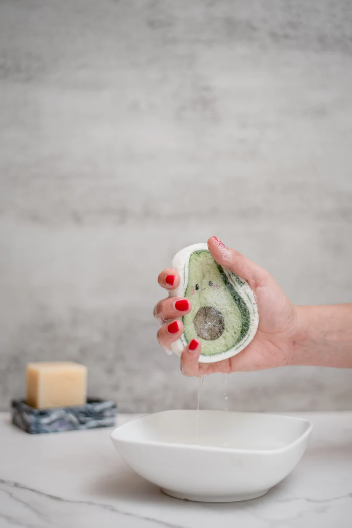 Esponja pop up con forma de palta, está pensada para limpiar sin ensuciar el planeta. Es de celulosa, sirve para lavar los platos, la casa y ¡las frutas! Vienen deshidratadas para no usar espacio y se inflan cuando las mojas.