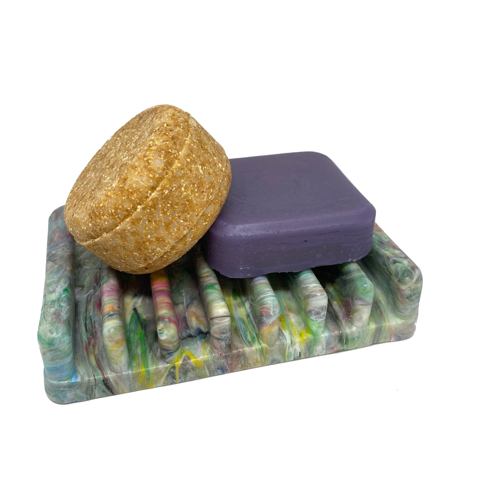 Jabonera hecha de plastico recicable