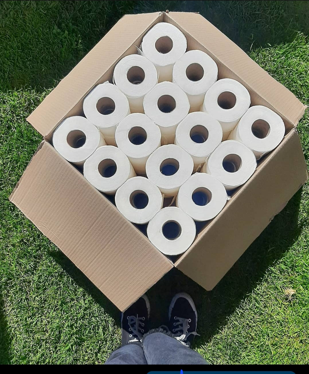 Papel higiénico doble hoja libre de envoltorios plásticos.